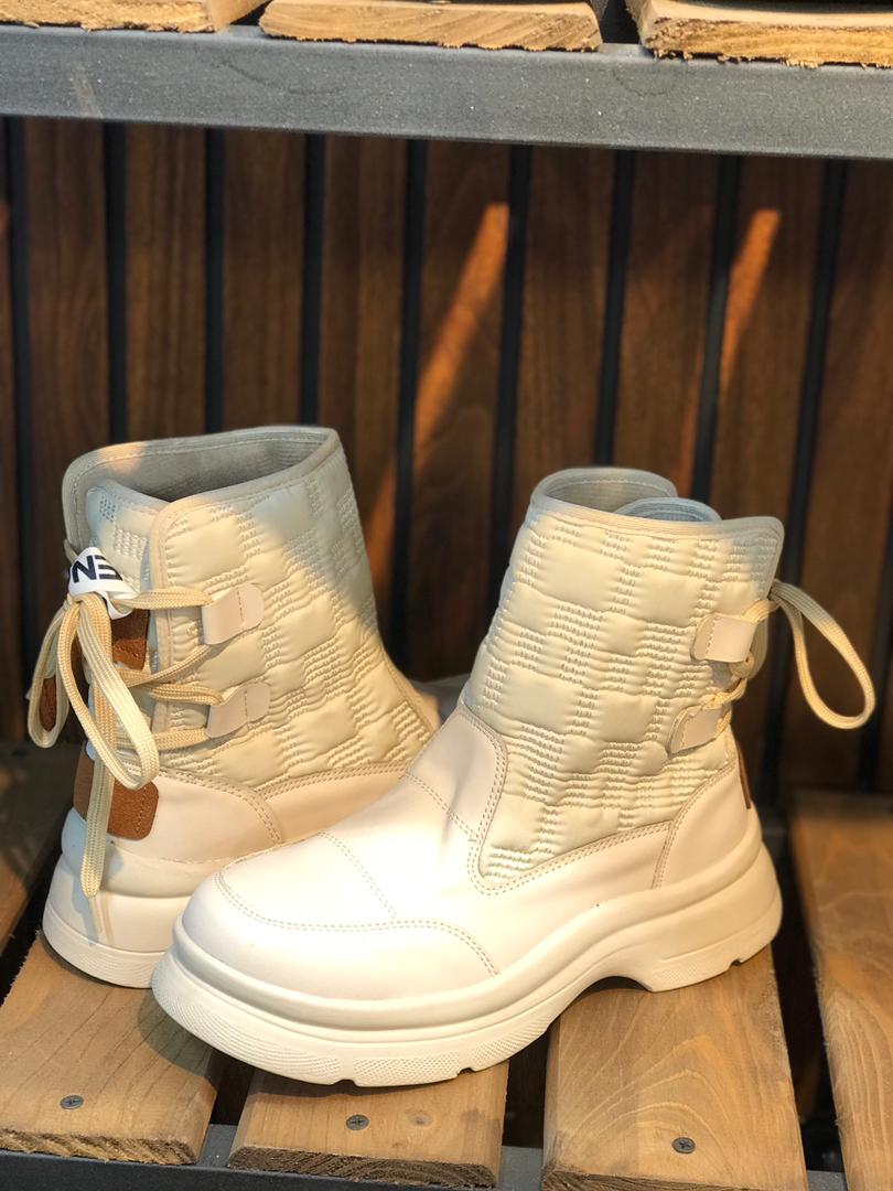 این بوت زمستانی با طراحی خاص و ترکیبی از چرم باکیفیت و پارچهی چهارخانه نقشدار، انتخابی ایدهآل برای افرادی است که به دنبال راحتی و ظاهر متفاوت هستند. قسمت بالایی بوت با دو بند تزئینی تقویت شده و شیارهای بافتدار آن جلوهای مدرن و چشمگیر به کفش بخشیده است.